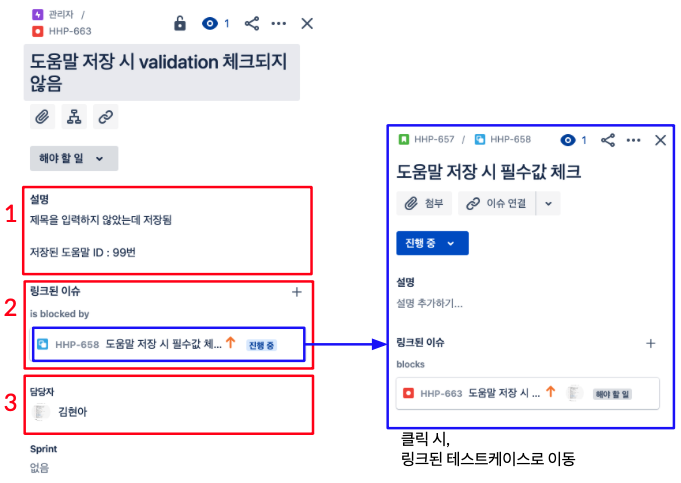 버그 백로그를 생성하여, 연관된 TC와 링크를 건다. 본문에는 테스트한 방식에 대한 자세한 설명과 테스트데이터를 입력한다.