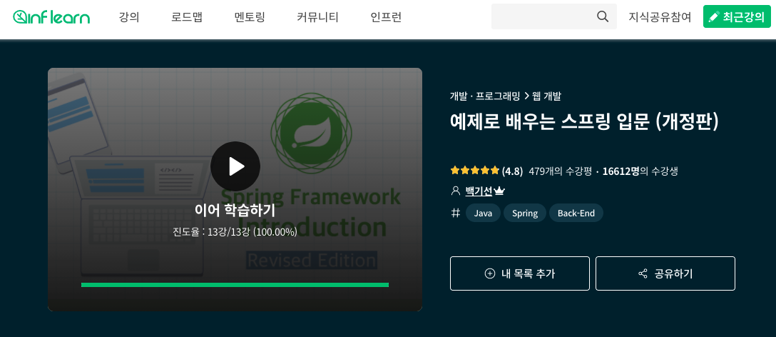 [강의 리뷰와 요약] 예제로 배우는 스프링 입문 (개정판) by 백기선