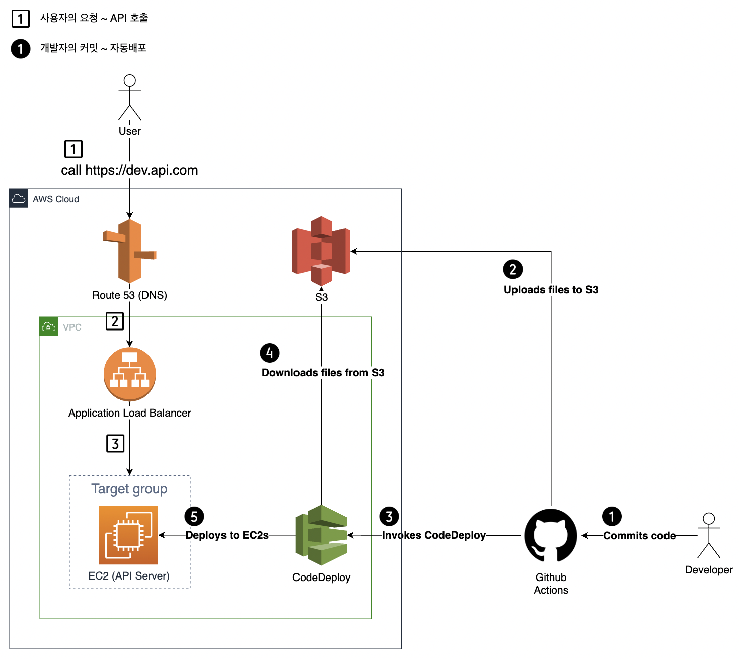 - 일부 자원 및 스크립트는 QA용으로 신규 생성함 (DNS, 로드밸런서, 타겟그룹, 인스턴스, CodeDeploy 배포그룹 및 스크립트, Github Actions Workflow 스크립트 등)