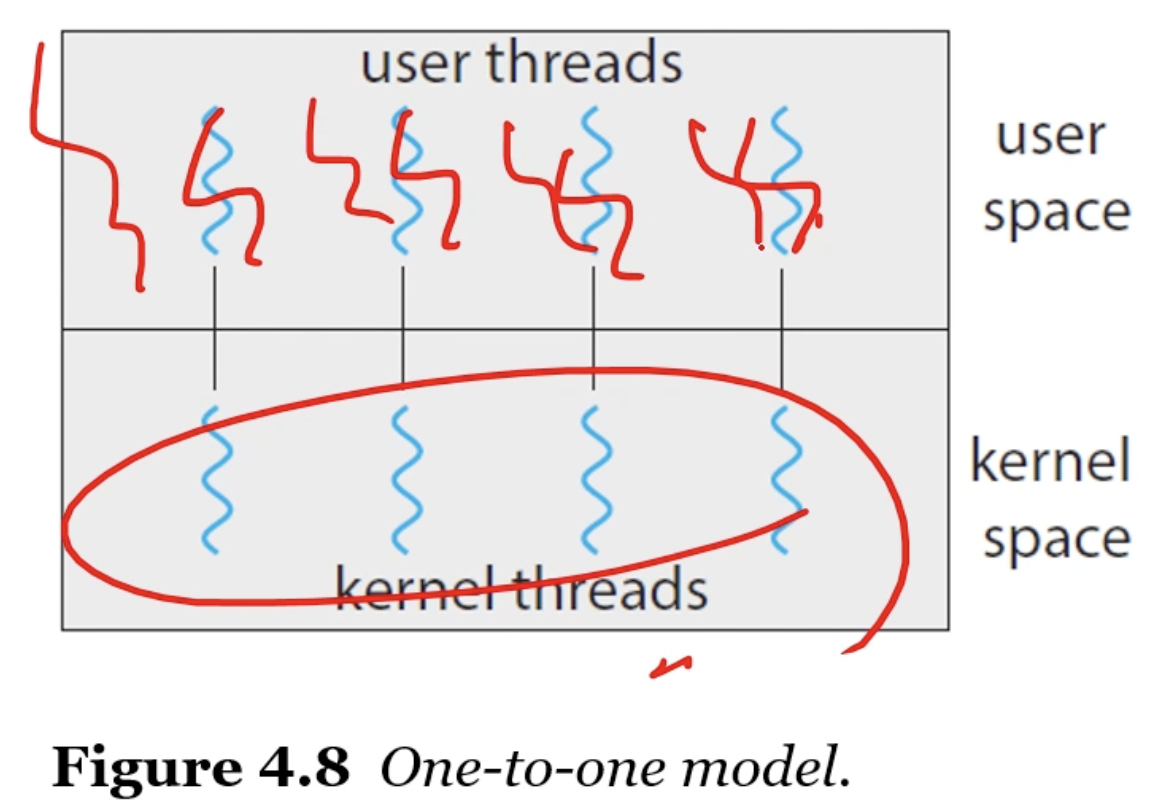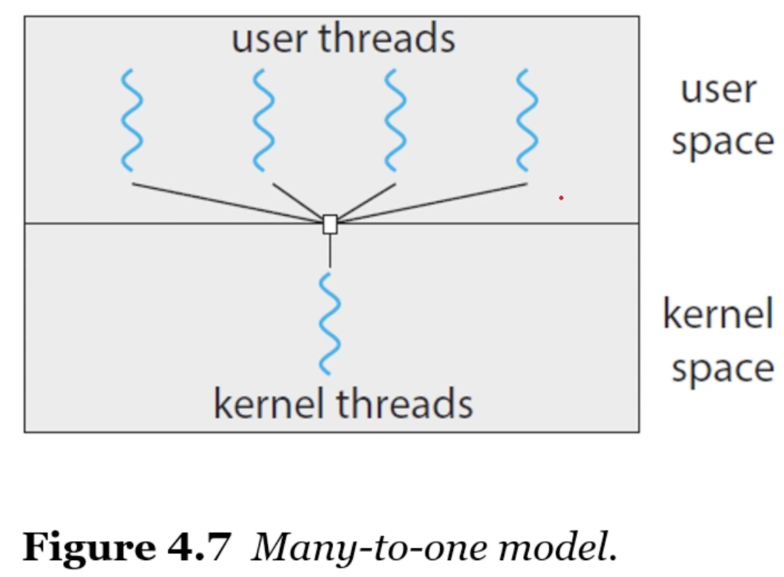 - Many to One : 커널 1개에 여러 개의 유저 스레드