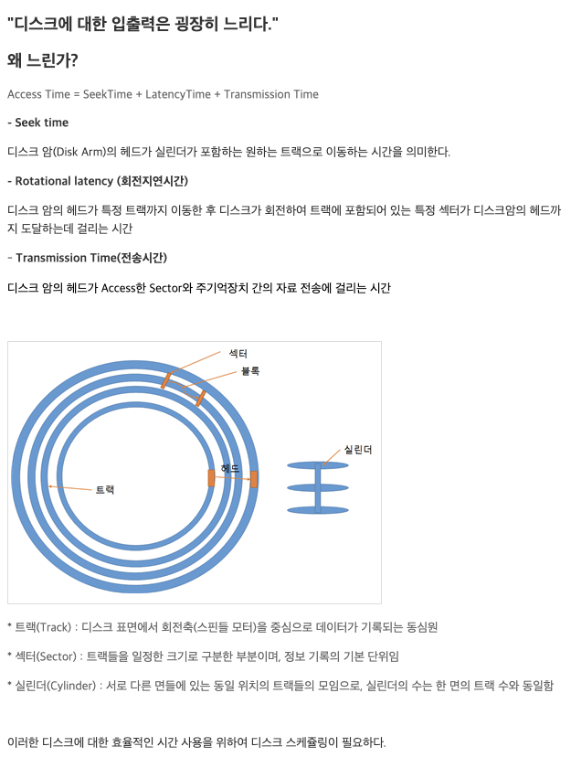 - 다스크에 대한 입출력은 왜 굉장히 느릴까? (교수님보다 설명 잘함)
