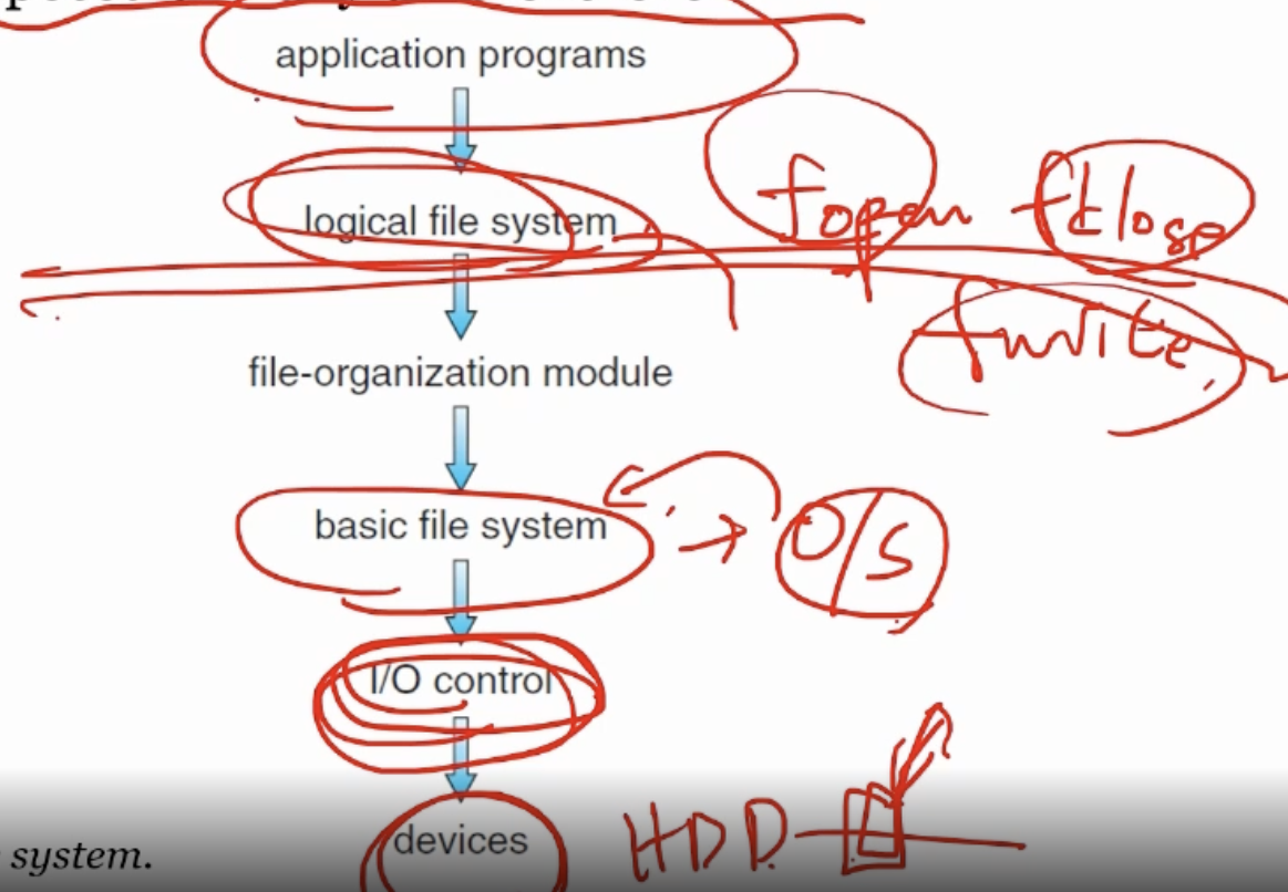 - 하드디스크에 물리적으로 데이터 읽고 쓰고 남기는 것은 OS의 할 일, 우리가 관심있는 것은 어플리케이션을 작성할 때 하드 접근해서 읽고 쓰고 안함. Interface를 통해 작성함 (물론 DBMS는 직접 하드 접근)