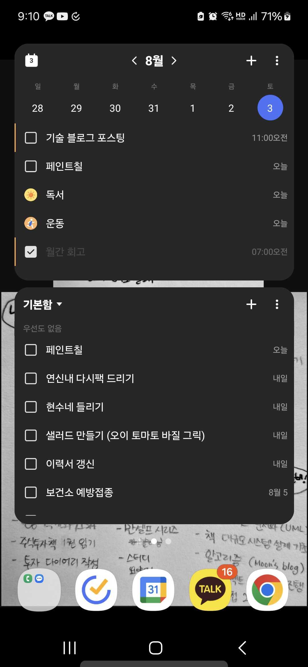 틱틱이랑 구글 캘린더 조합으로 할 일과 일정을 관리하고 있다.