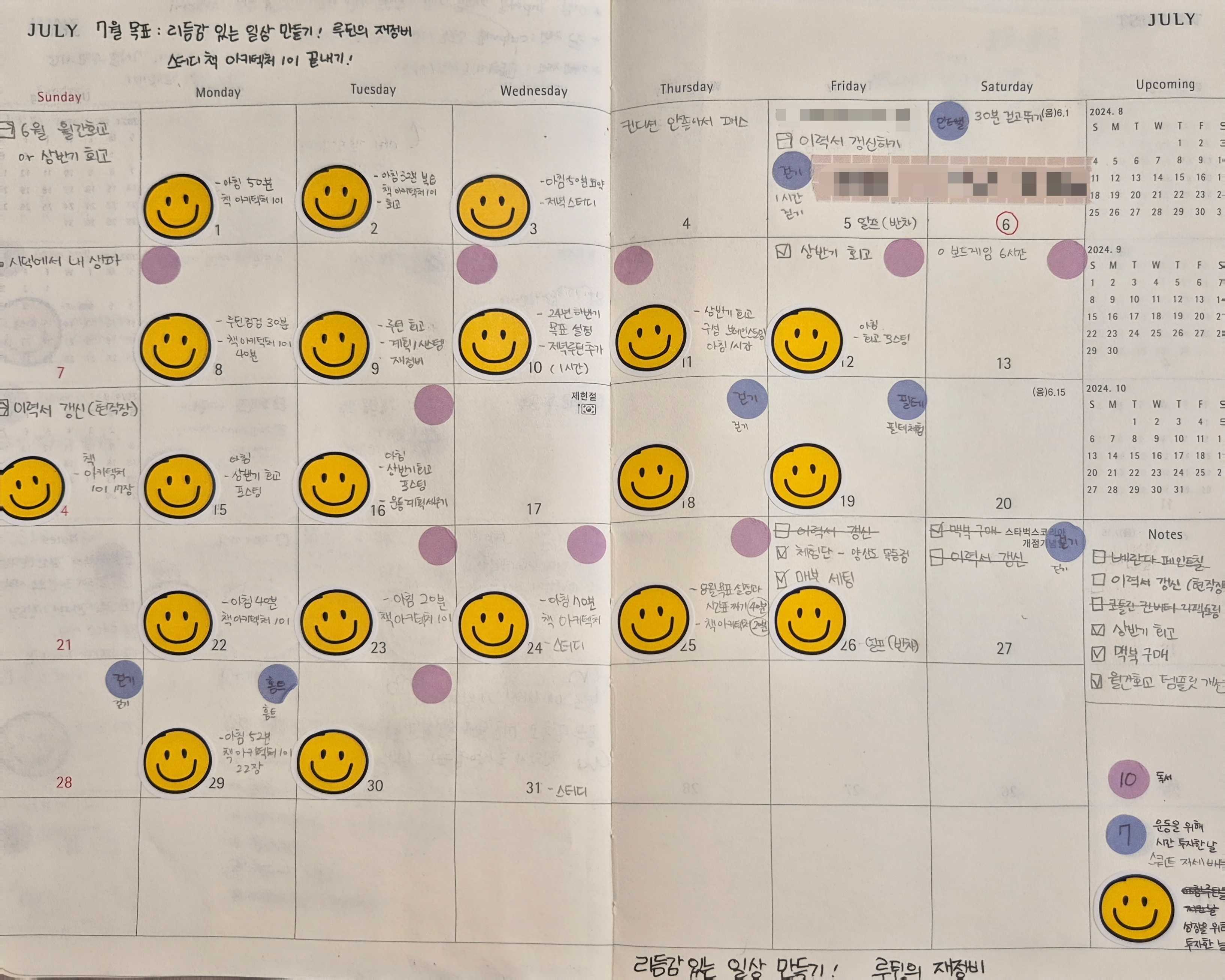 7월의 문구는 "리듬감 있는 일상 만들기" 였다.