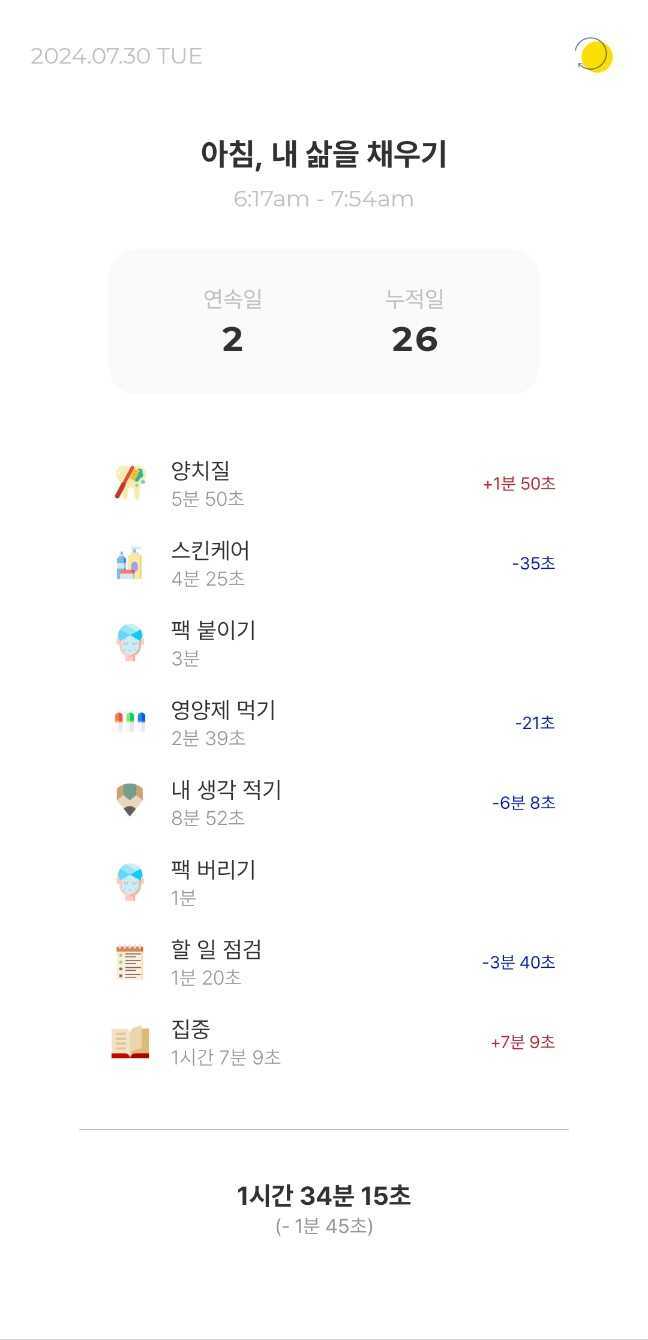 종종 잠을 설친 날은 뭔가 피로하고 의욕이 없어서 루틴을 스킵하게 되지만, 잘 자고 일어난 날은 아침 시간이 여유롭다.