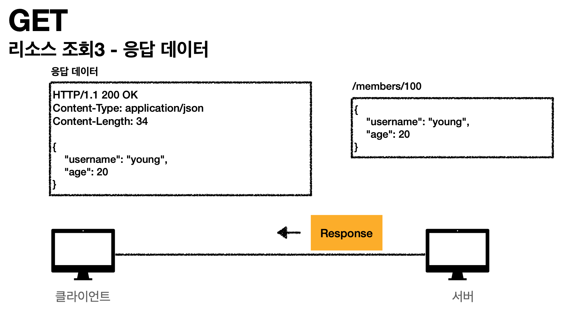 - 서버는 요청 데이터를 처리(메시지 바디를 통해 들어온 데이터를 처리하는 모든 기능을 수행)